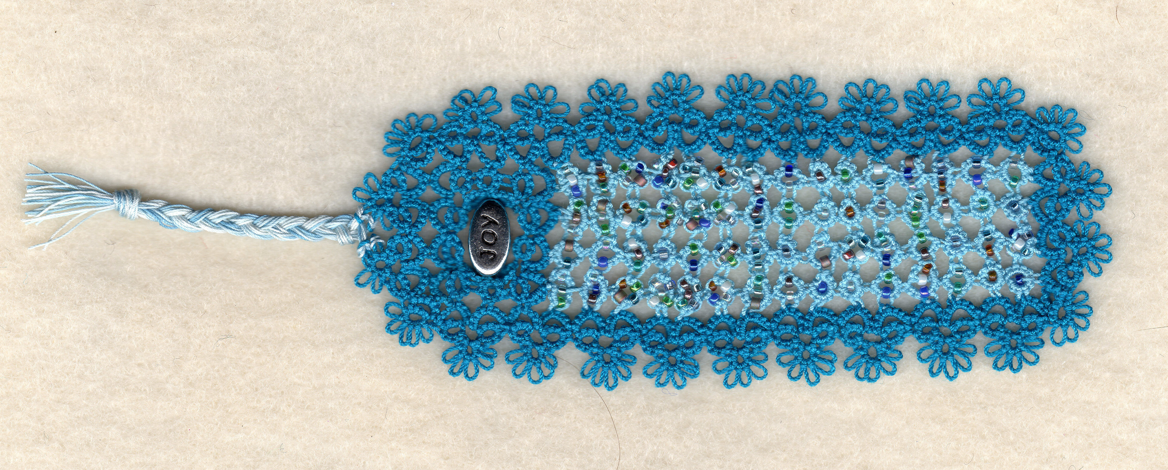 This tatted lace bookmark is based on the tune commonly known as “Ode to Joy” or “Joyful, Joyful We Adore Thee.” Beethoven features the melody in the last movement of his 9th Symphony.